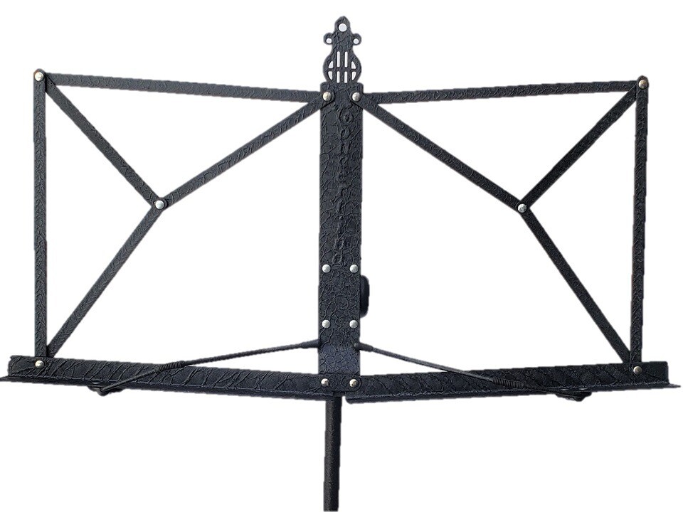 Atril de partitura color negro, corrugado. Incluye estuche.