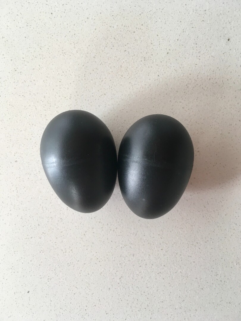 Maracas (par) en forma de huevo. Disponible en colores negro y azul.